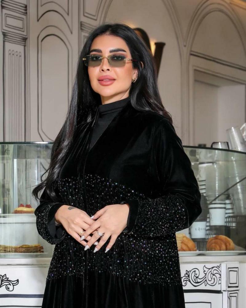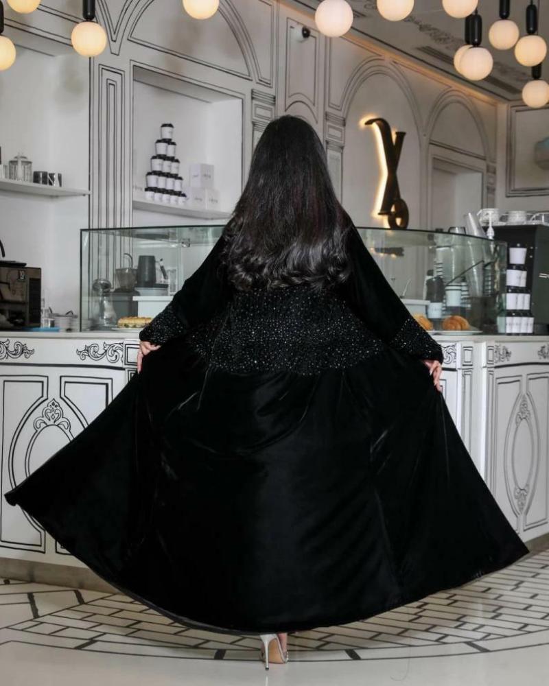 عباية مخمل كوري فاخرة بشك يدوي مميز وقصة كلوش