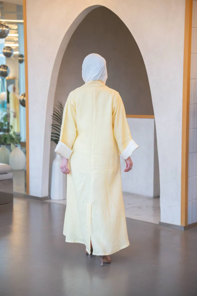 بليزر خفيف وعملي مصنوع من اللِّنن الهندي الطبيعي، يتميز بتهويته العالية وراحته المثالية أثناء التنقل. يأتي بلون أصفر أنيق ومبهج يضفي لمسة من الإشراقة على إطلالتك، ويُعد خيارًا رائعًا للسفر بفضل تصميمه البسيط وسهولة تنسيقه مع مختلف الإطلالات.