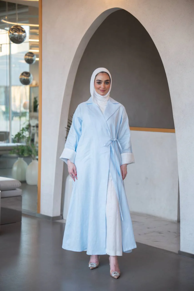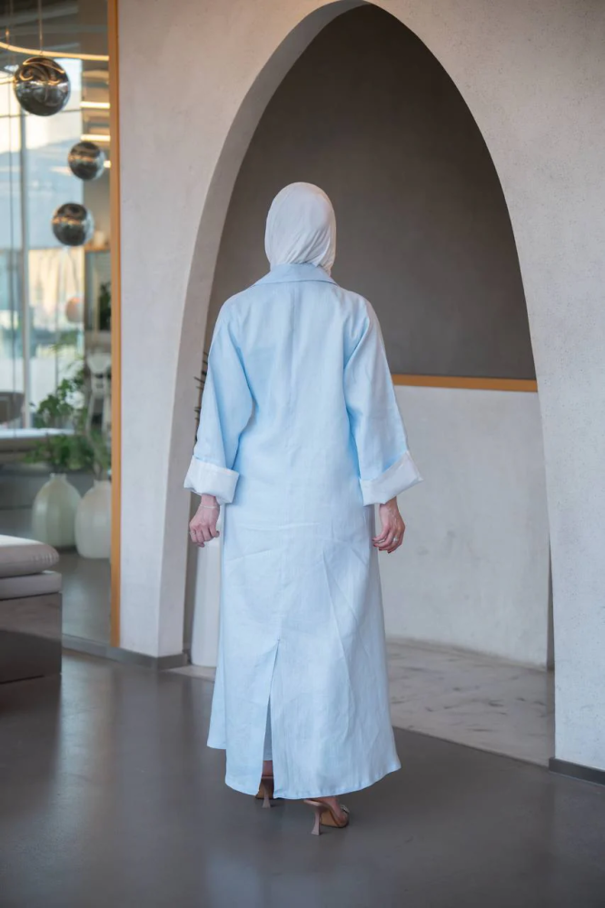 بليزر خفيف وعملي مصنوع من اللِّنن الهندي الطبيعي، يتميز بتهويته العالية وراحته المثالية أثناء التنقل. يأتي بلون ازرق سماوي أنيق ومبهج يضفي لمسة من الإشراقة على إطلالتك، ويُعد خيارًا رائعًا للسفر بفضل تصميمه البسيط وسهولة تنسيقه مع مختلف الإطلالات.