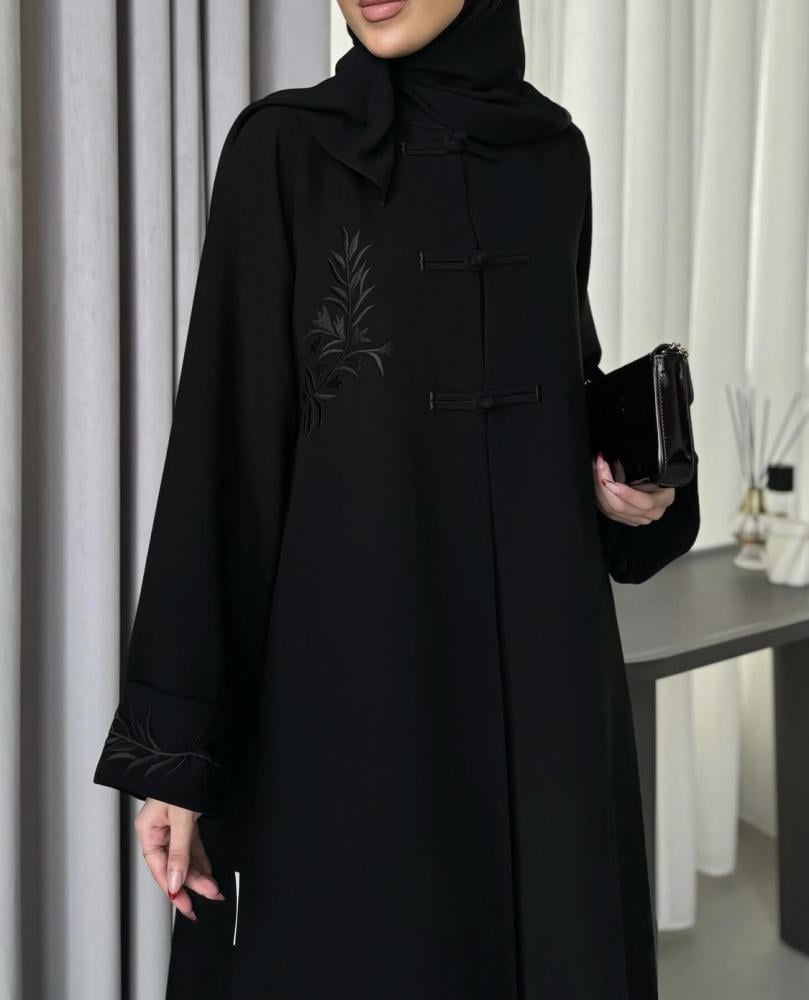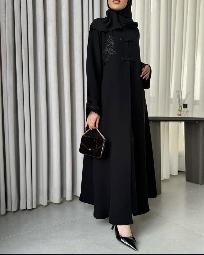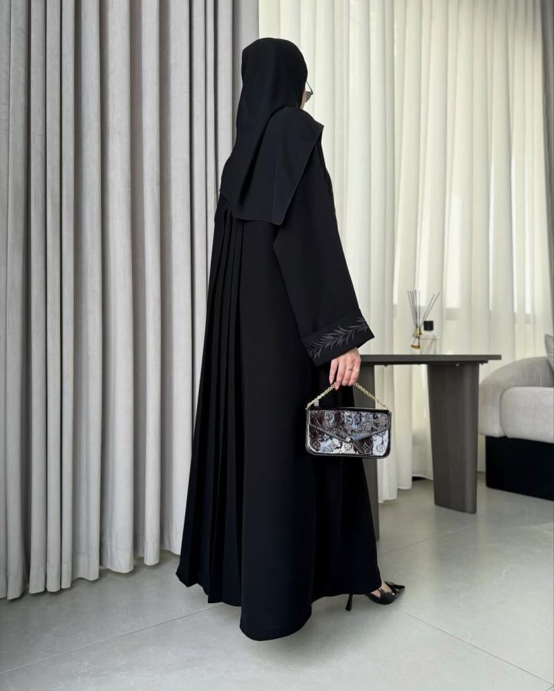 عباية فاخرة بتصميم يجمع بين الرقي والنعومة، مصنوعة من قماش كريب كوري عالي الجودة، بملمس ناعم وانسيابي يمنحك راحة وأناقة في كل حركة.