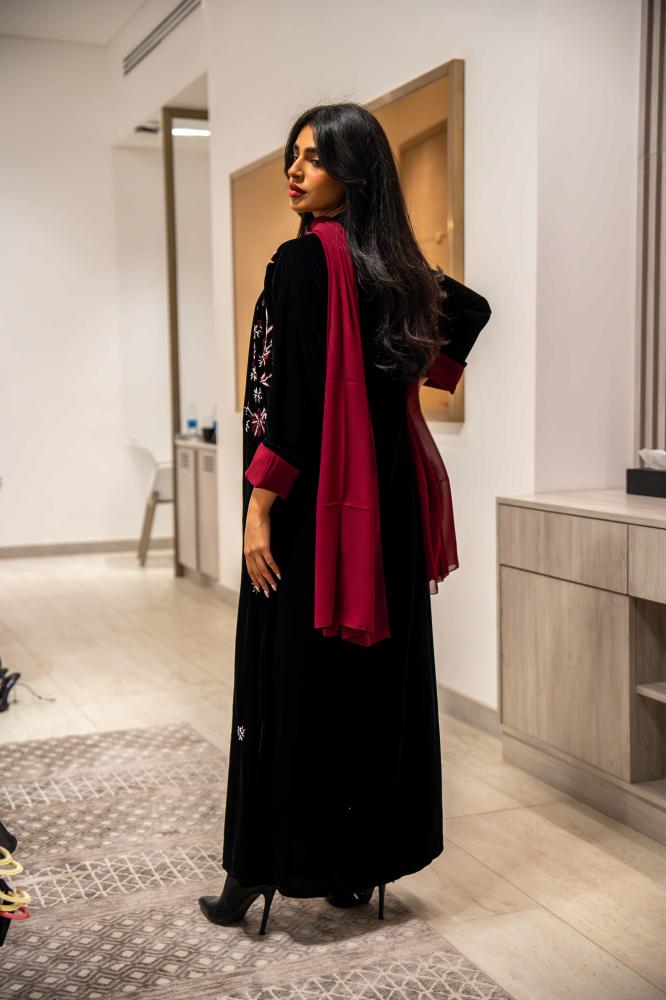 عباية مخمل كوري بشك يدوي لون اسود و ماروني